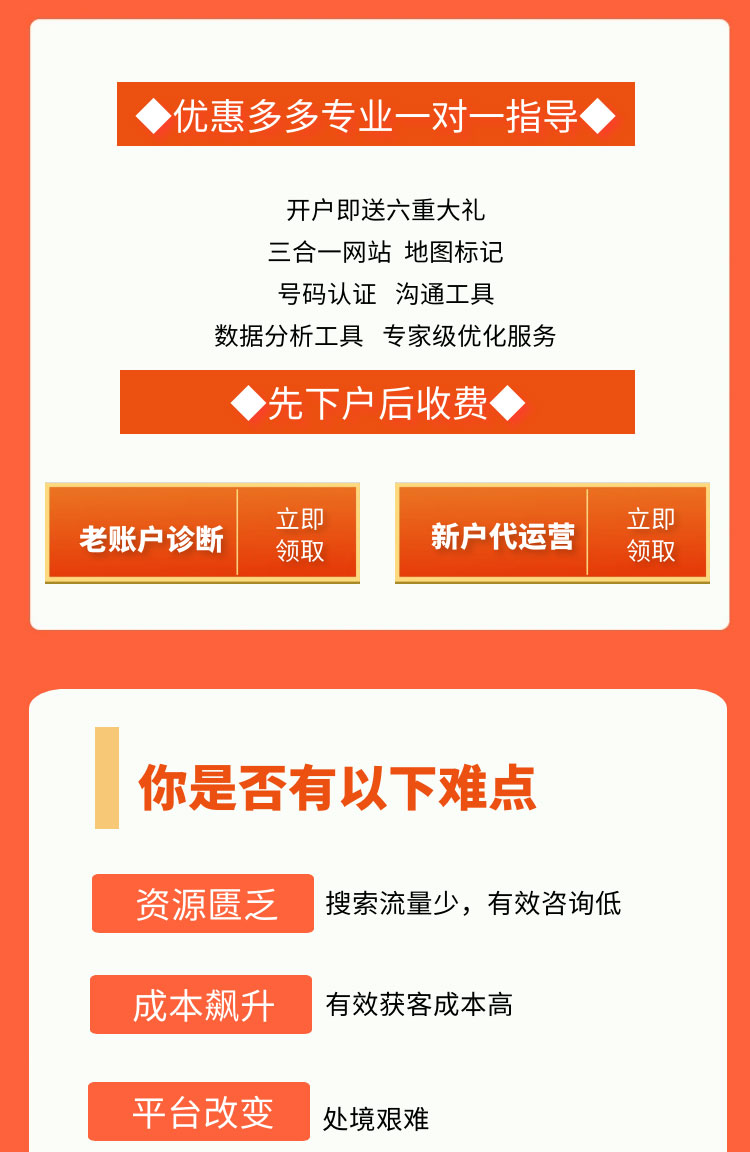 老生常谈的问题,招聘一个有经验的竞价专员工资高,招聘周期长,算下来成本不低。综合实力强的公司当然没问题,一个竞价专员的成本完全能接受;但相对业务单一,还在起步阶段的公司,招聘竞价专员并不划算,会选择竞价托管代运营公司或者个人。